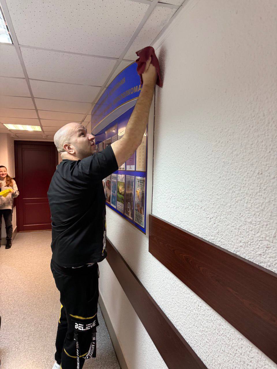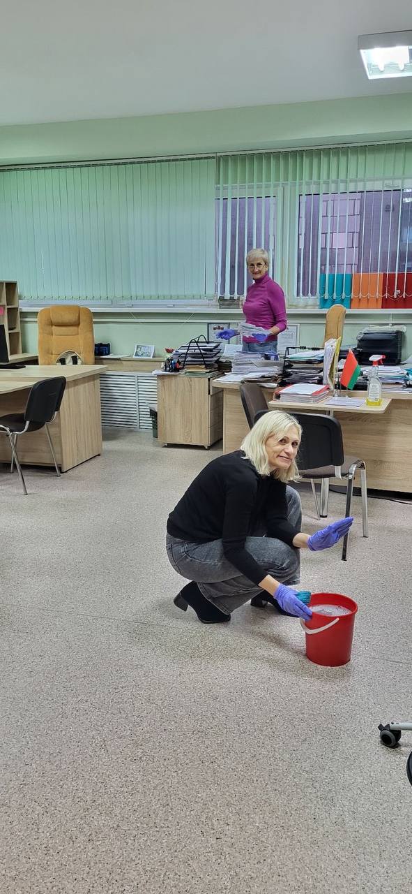 Пока часть коллектива работала на областной площадке у Памятника Марату Казею в Станьково, сотрудники главного управления навели порядок в самом здании управления.