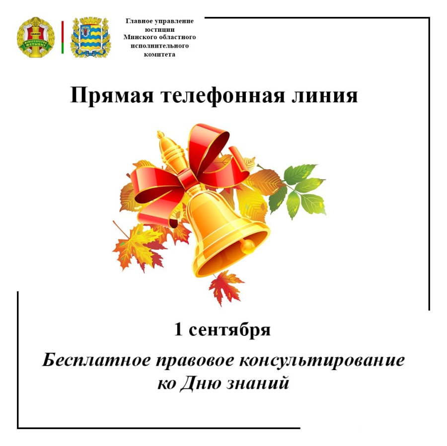 1 сентября с 11:00 до 13:00 главное управление юстиции в формате прямой телефонной линии проведет консультацию граждан, приуроченную ко Дню знаний.