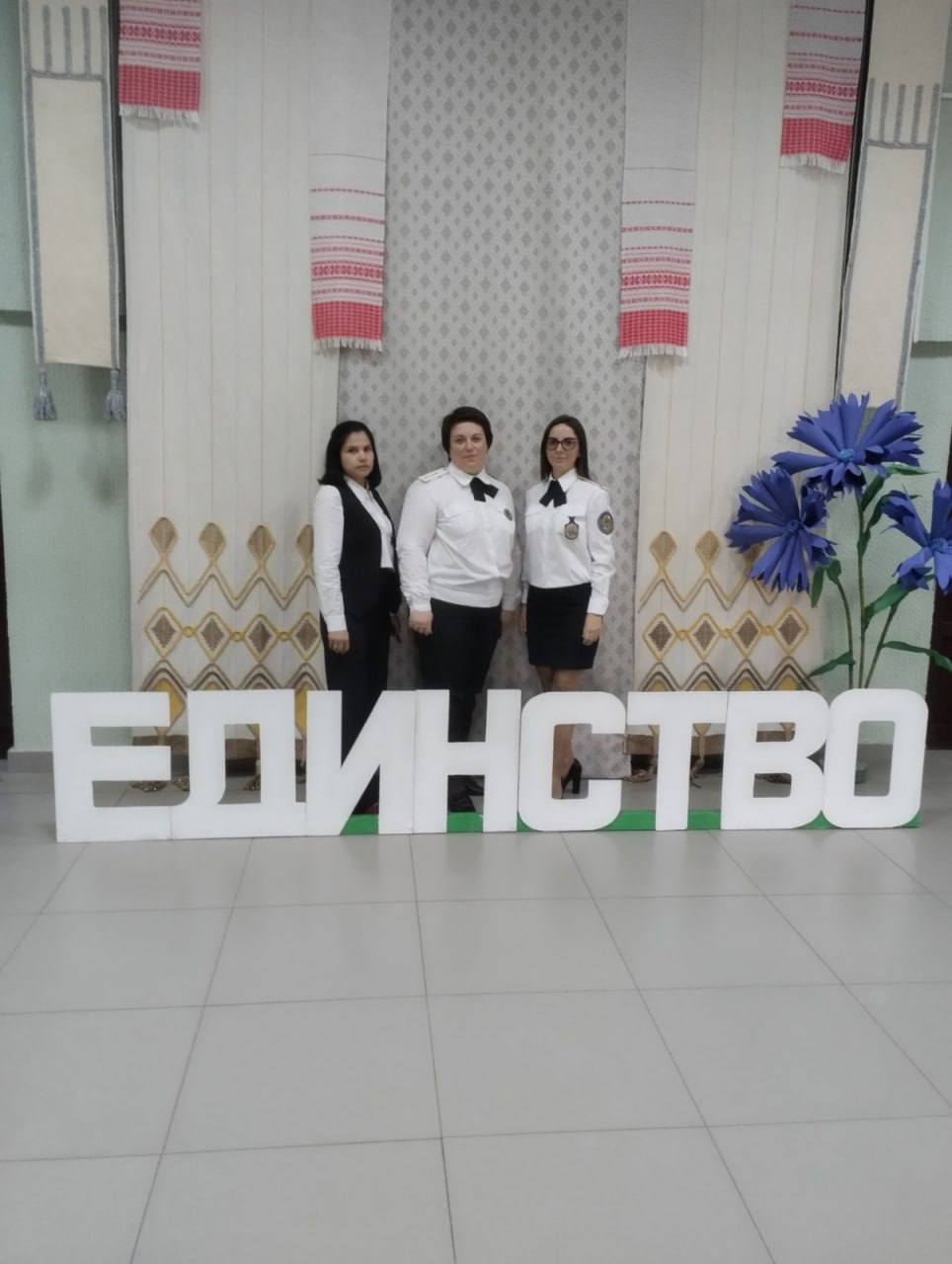 Начальник отдела загс Клецкого райисполкома Рудко Ольга Евгеньевна встретилась с учащимися ГУО «Клецкая средняя школа №1». Она напомнила о значении праздника, его истории и важности единства для развития нашего общества. Учащиеся активно участвовали в обсуждении, задавали вопросы и делились своими мыслями.