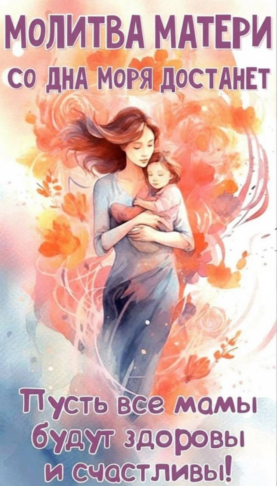 Мама, подобно Богородице, защищает нас от бед, становится надежным щитом и опорой. Она всегда рядом, готова выслушать, поддержать и дать мудрый совет. Самоотверженная материнская молитва, как крылья ангела, простирается над детьми, защищая их от болезней и несчастий, помогает в воде и в воздухе, вырывает из лап страстей и самой смерти. Ведь недаром говорят: молитва матери со дна моря достанет.